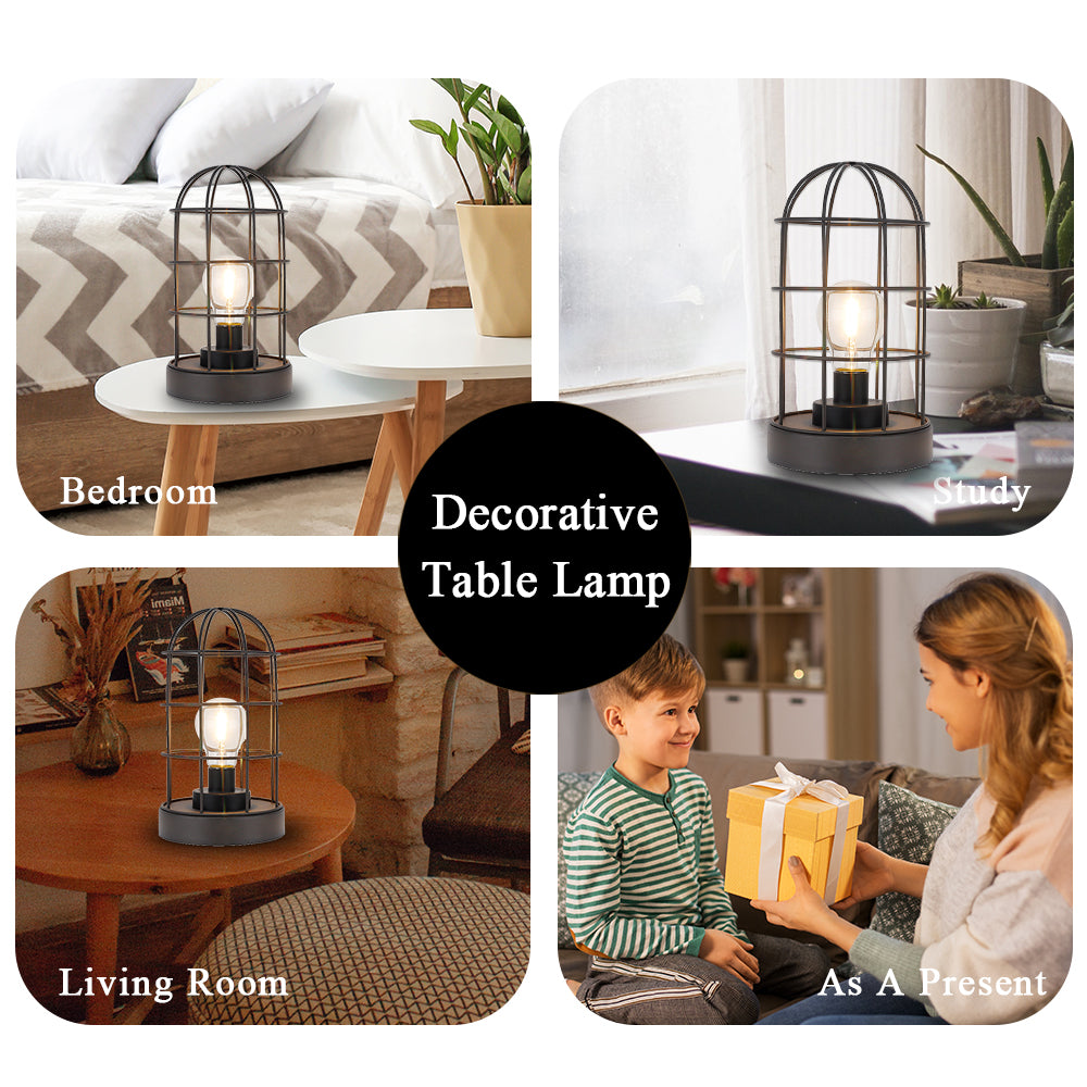 9.5''H Decorative Table Lamp Metal Cage Cordless Lamps with LED Bulb(Black)