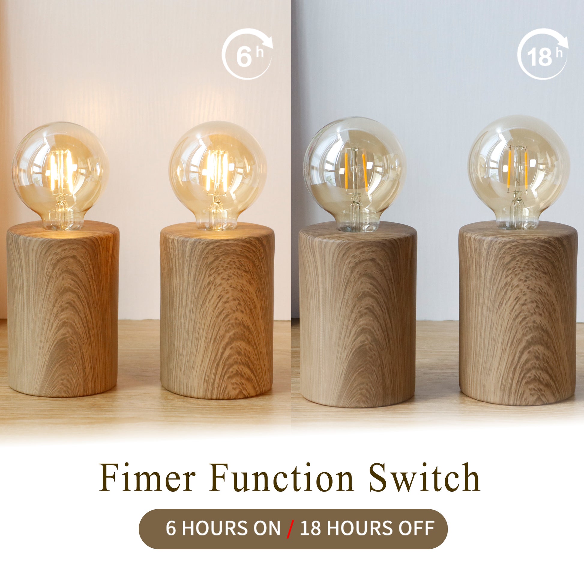 JHY DESIGN 8.5" Tall Set of 2 Wood Grain Table Lamp Ceramic Cordless Lamp