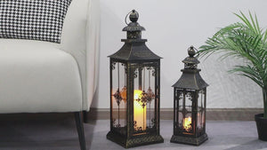 JHY DESIGN Set of 2 13''&19.5''H Decorative Candle Lanterns (Black with Gold Brush)