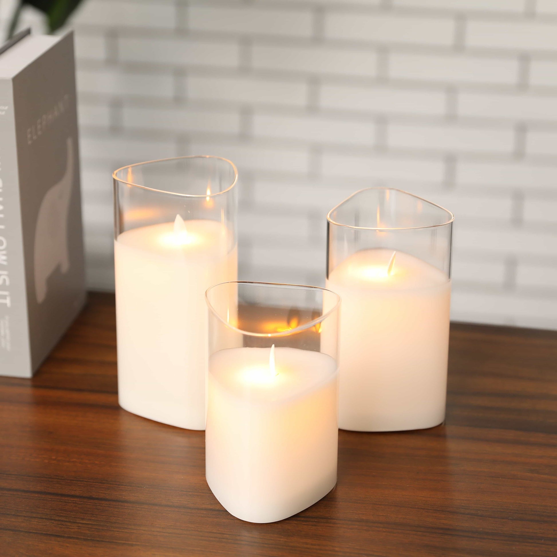 Steering away from the conventional, JHY DESIGN presents its Triangular Glass Flameless Candles. This trio transcends standard luminaries, serving as the intersection of contemporary design and flickering finesse.