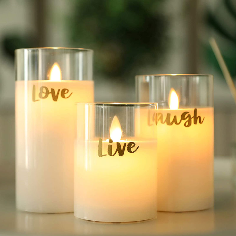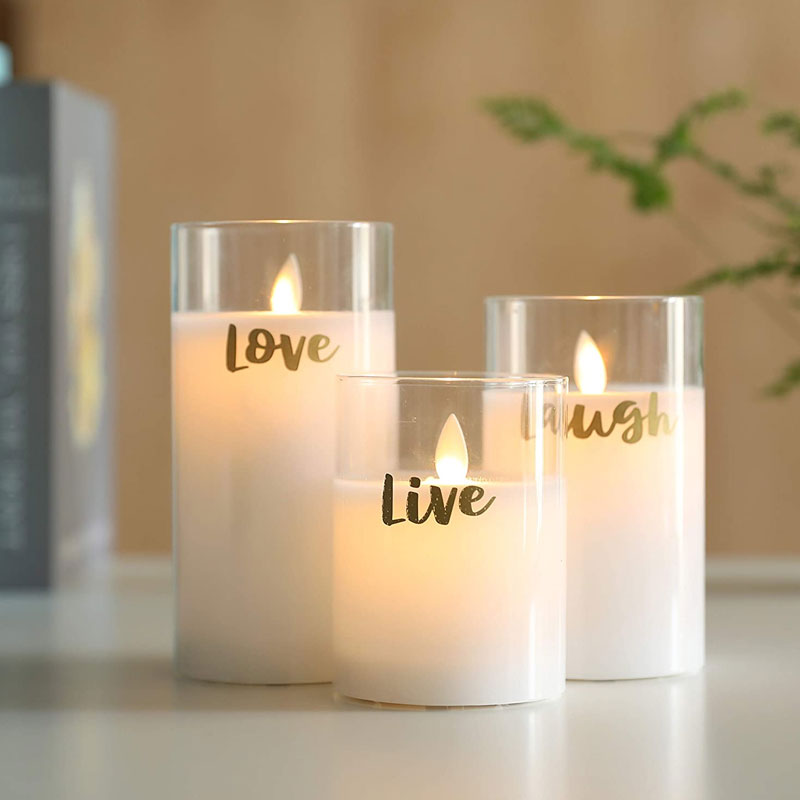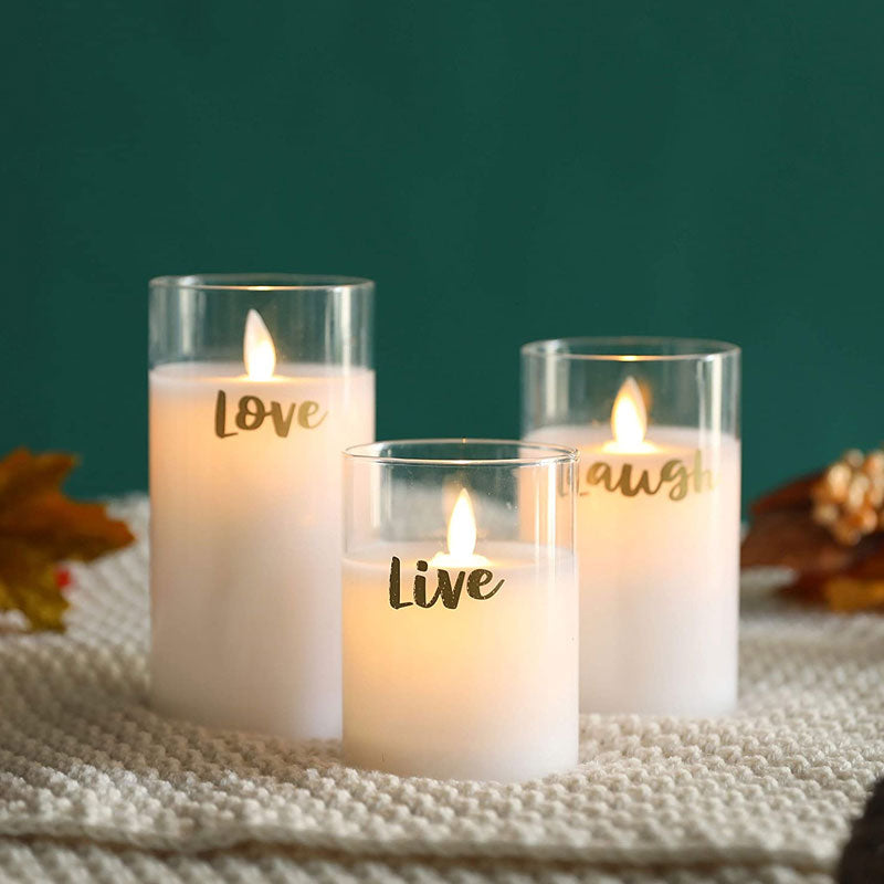JHY DESIGN’s Heartfelt Luminaries: The “Live, Love, Laugh” Glass Wax LED Candle Trio