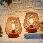 Illuminate Your Space with 6.7" Tall Metal Cage Shape Cordless Table Lamp Battery Lanterns (Set of 2)