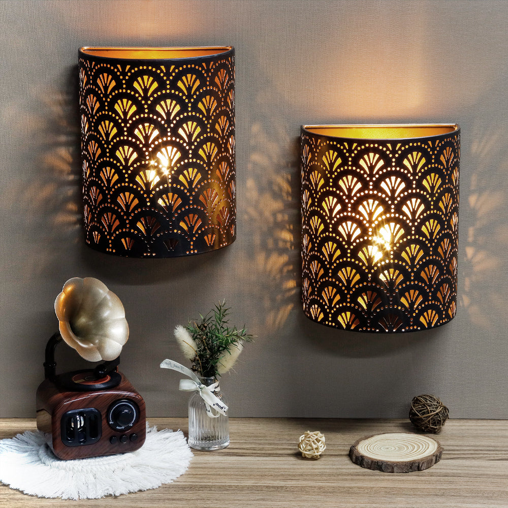 8''H Set of 2 Wall Sconce Lighting Metal Rustic Wall Mount Lamp with 6-Hours Timer(Flabellum)