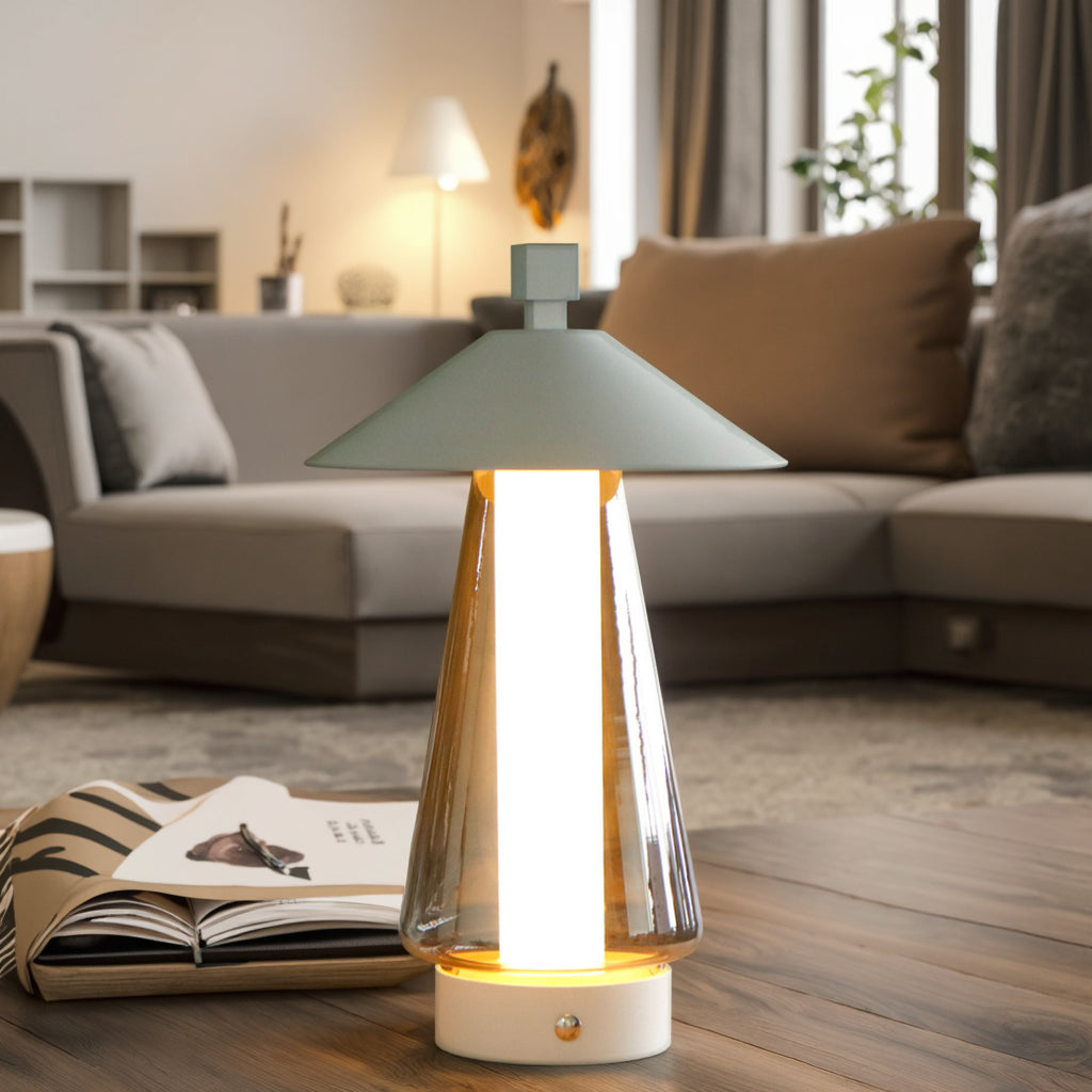 【Grey anodized glass lampshade】-7"L x 7"W x 12"H.Crafted with a unique grey anodized glass, this lamp combines elegance and functionality. It creates a soft, soothing glow, adding a sophisticated touch to any room.