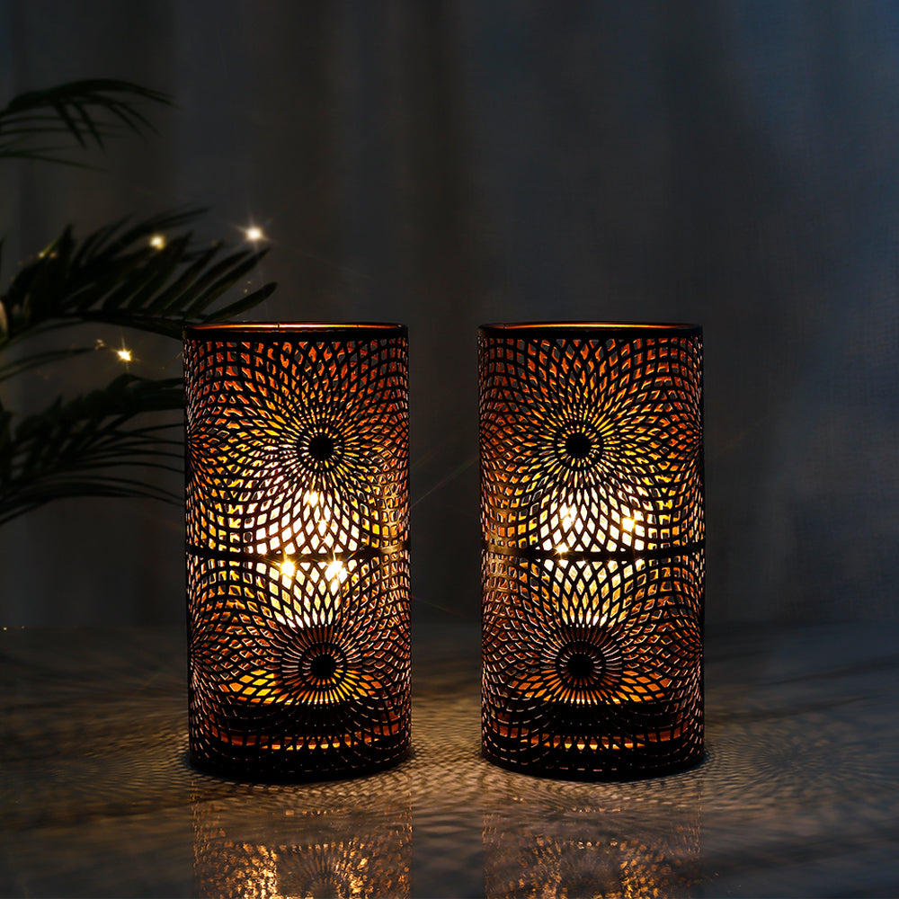• 【SET OF 2 PATTERNED METAL LAMP】The life-size vintage decorative lamp battery powered, with edison style bulb, warm white and white color, creates an aura of old world charm - Adds a gorgeous touch to any space with the graceful marriage of beauty & practicality - Eye-catching prop for tables, bars, patios, porches; fabulous indoor & outdoor decor day & night.