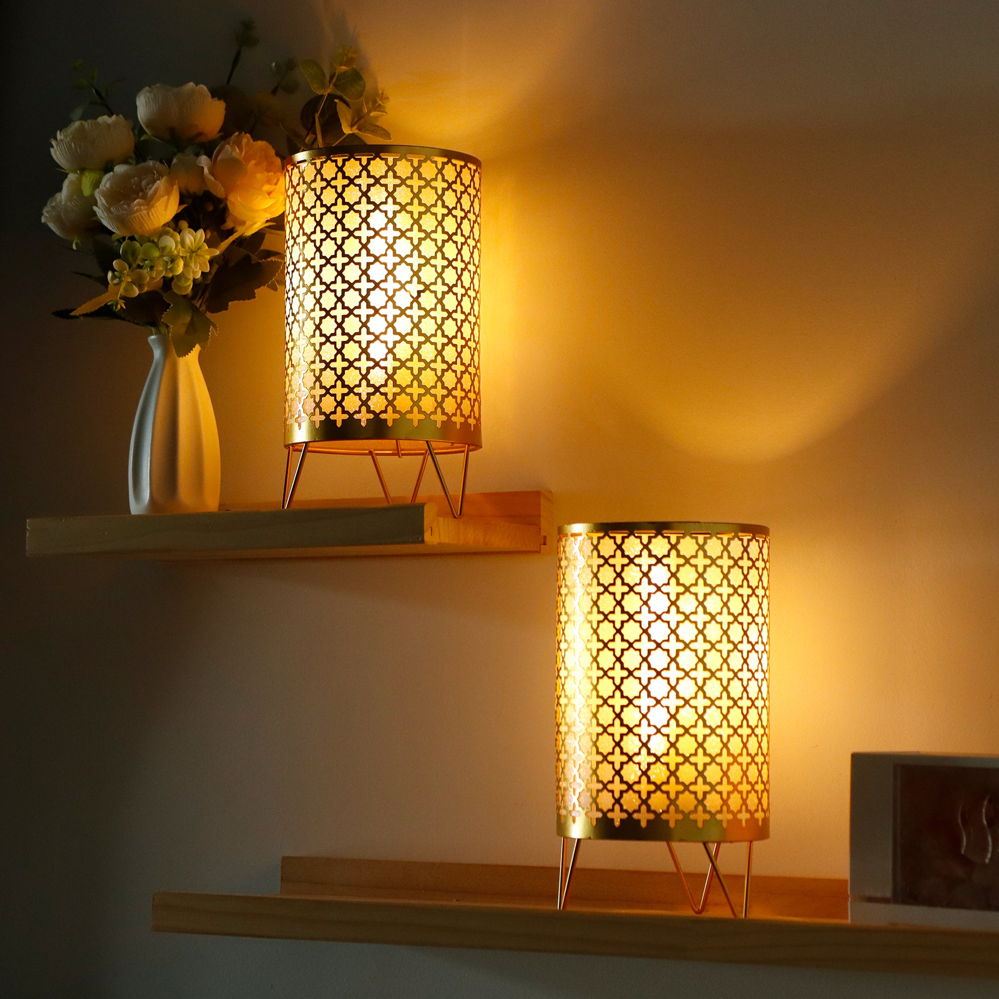 EXQUISITE HOLLOW-OUT DESIGN FOR A LUXURIOUS AMBIANCE: The lamps feature an intricate hollow-out design, casting beautiful patterns of light and shadow. The stylish gold finish paired with the cut-out patterns adds an elegant, luxurious touch to any room or outdoor space, creating a warm and inviting atmosphere.