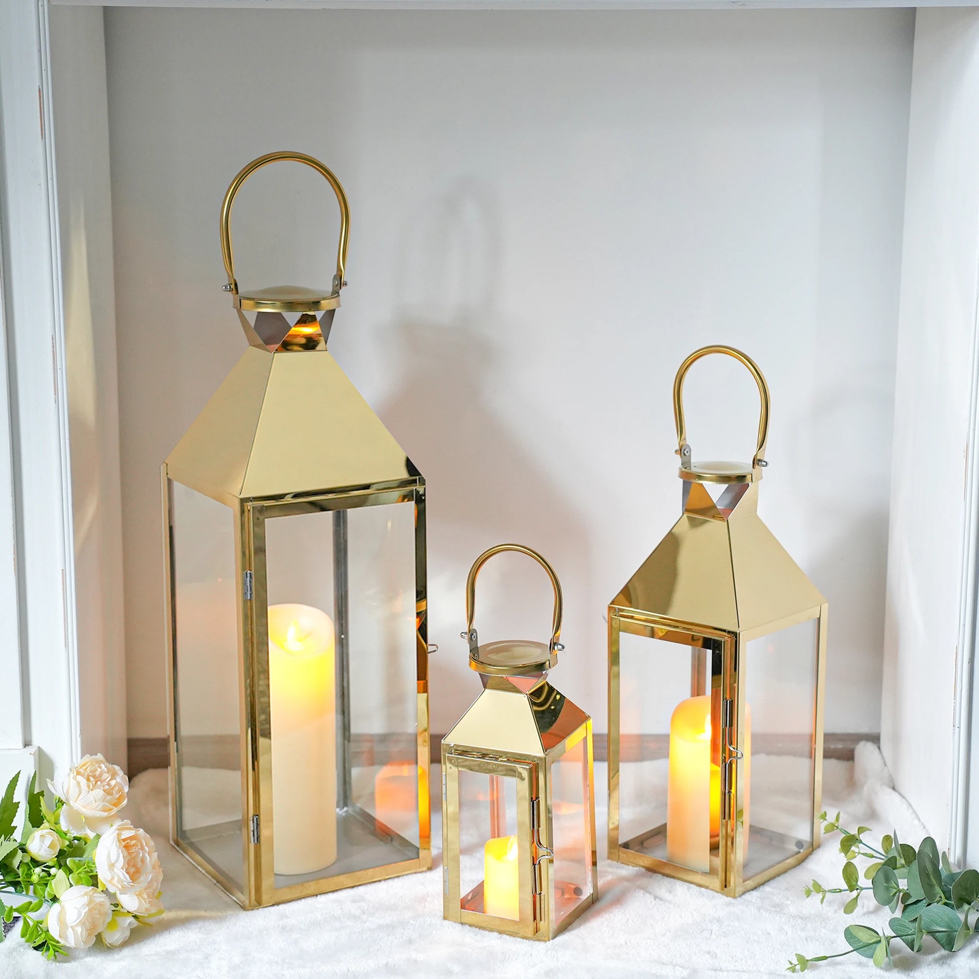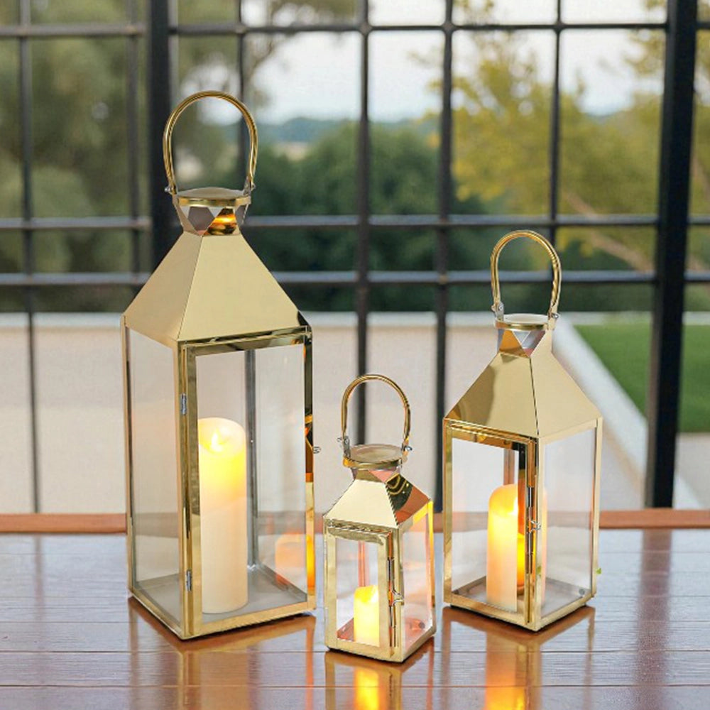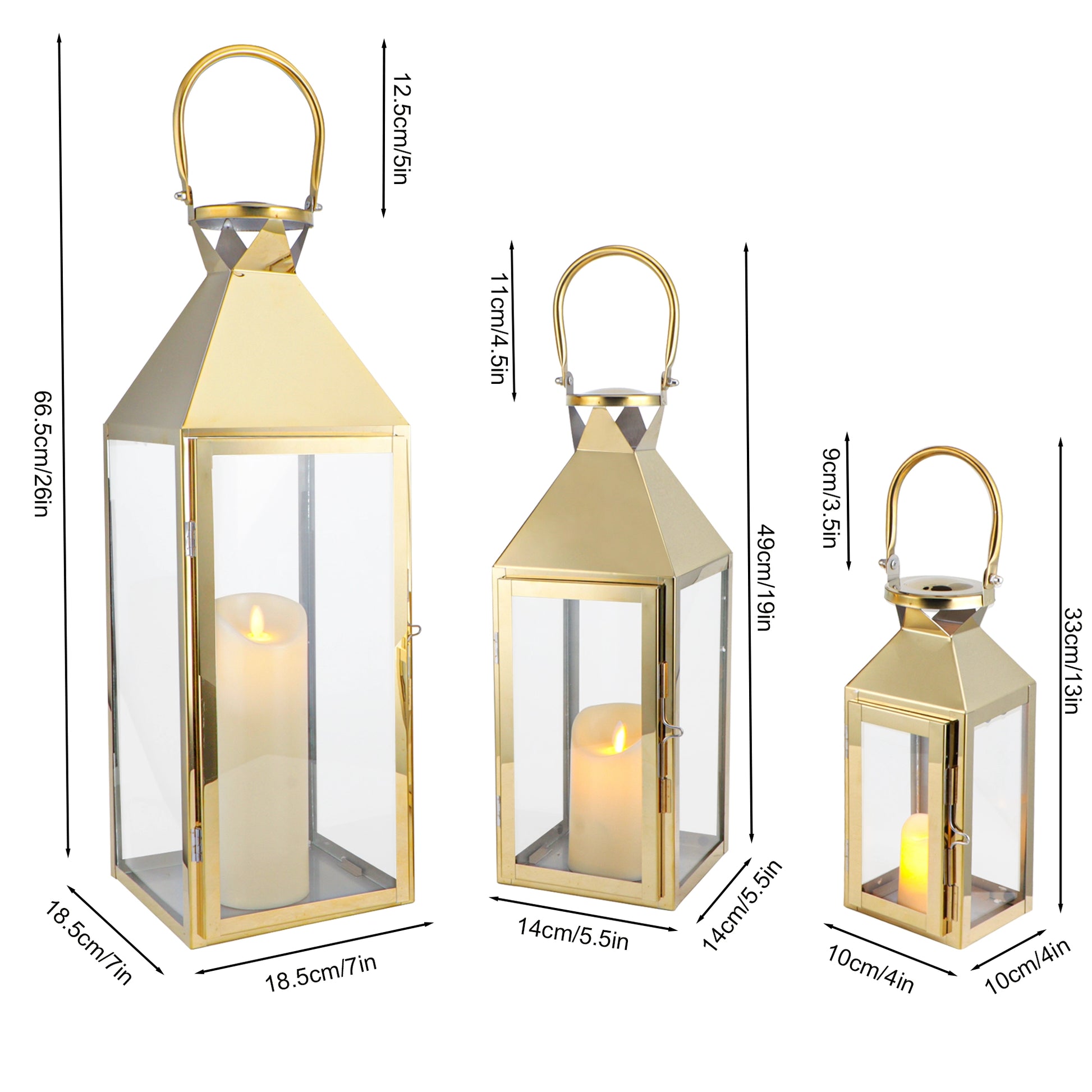 š”ćVERSATILE DESIGNćThese lantern set includes three lanterns of different sizes. These lanterns of different sizes can be placed on any surface or hung by decorative rings. Suitable for various styles: From farmhouse to decoration, wedding to everyday life. This lantern is the perfect choice to show off your favorite scented, tealight or LED candle(NOT included).
