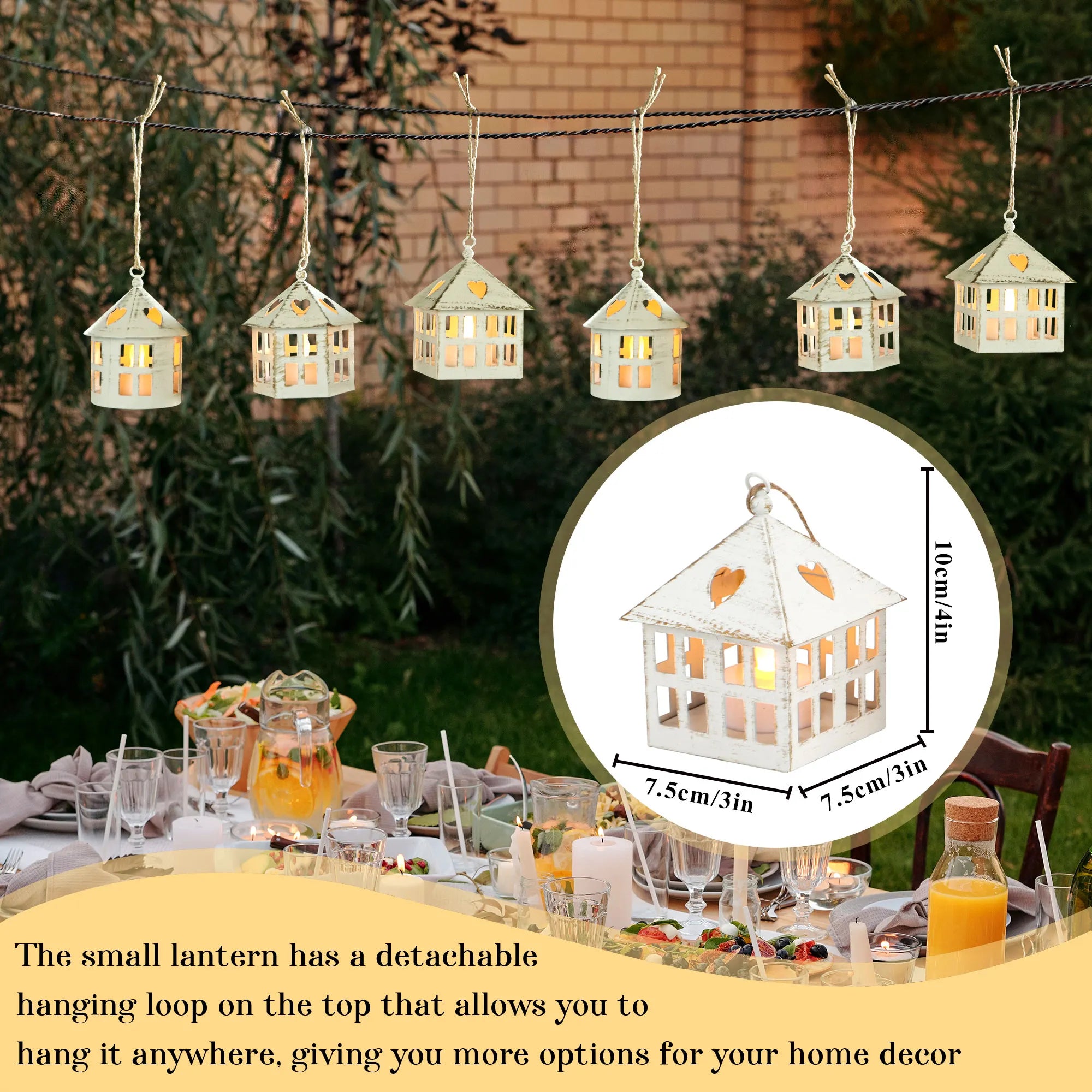 ćSet of 6 for Endless Possibilitiesć-Each lantern holds a standard tea light and features a sturdy metal frame. Use as hanging dĆ©cor or lamp wedding lights for enchanting effects. Their compact size (2.5"L x 2.5"W x 4"H) fits shelves, mantels, or tables effortlessly.