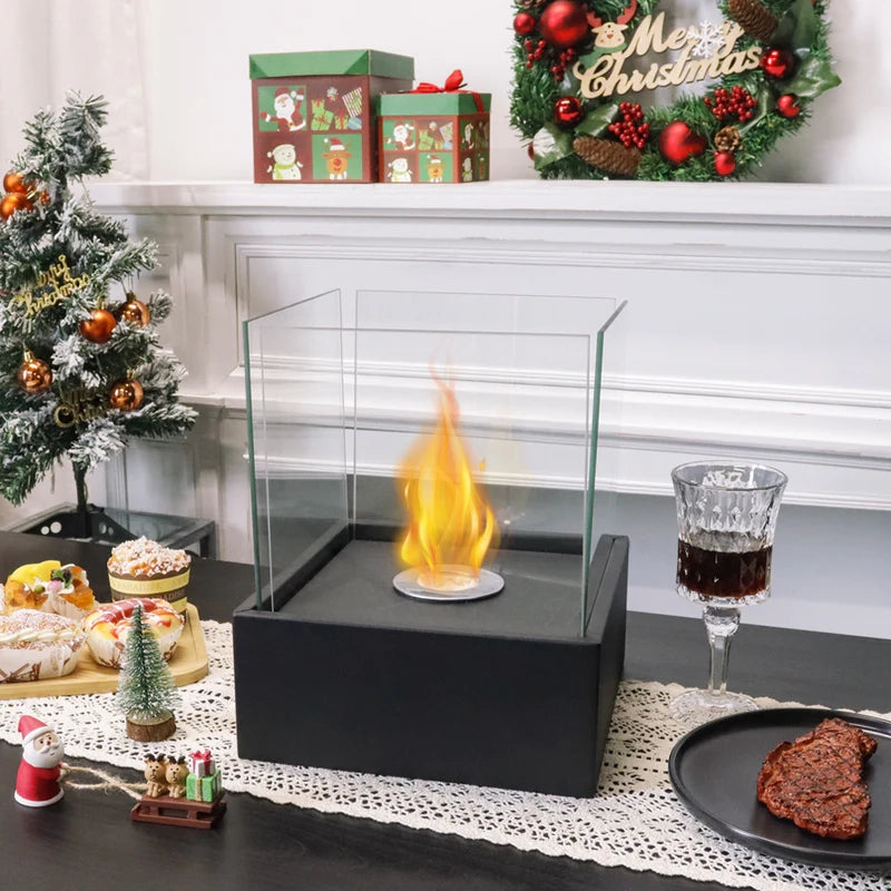 Square Tabletop Fire Bowl Pot with Four-Sided Glass