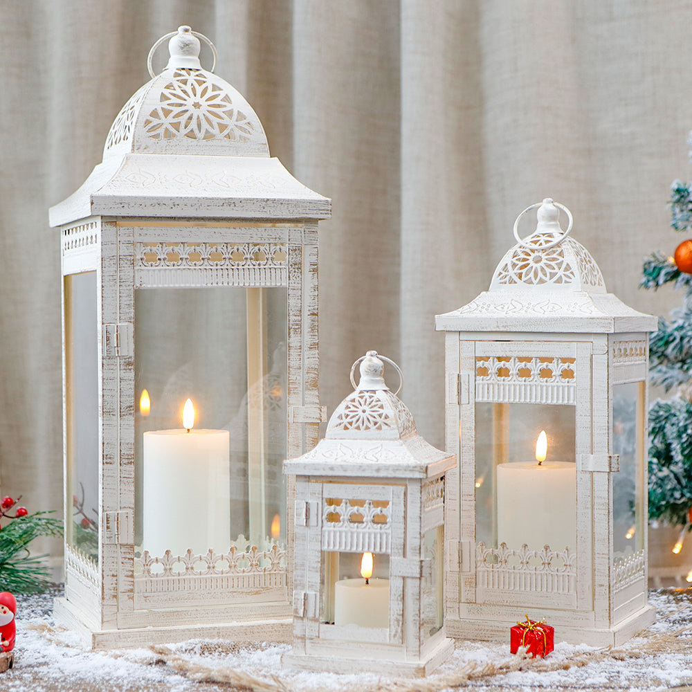 Illuminate your surroundings with the vintage allure of the JHY DESIGN metal candle lanterns. From its life-size design to the exquisite glass panes and elegantly distressed beige powdering, every detail resonates with the charm of bygone eras. These lanterns, versatile as both outdoor Lanterns and decorative Lanterns, transform any space into a haven of warmth. Explore the marriage of beauty and practicality that makes them perfect for both indoor and outdoor settings.