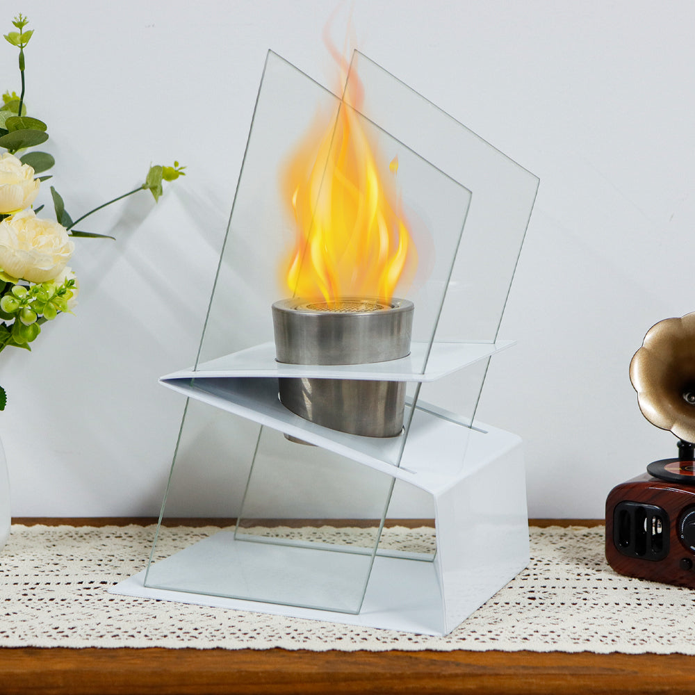 Introducing our Desktop Fireplace - a unique and elegant addition to your living space. Crafted with a blend of iron, stainless steel, and tempered glass, this exquisite piece combines functionality with aesthetics to create a mesmerizing focal point in any room.