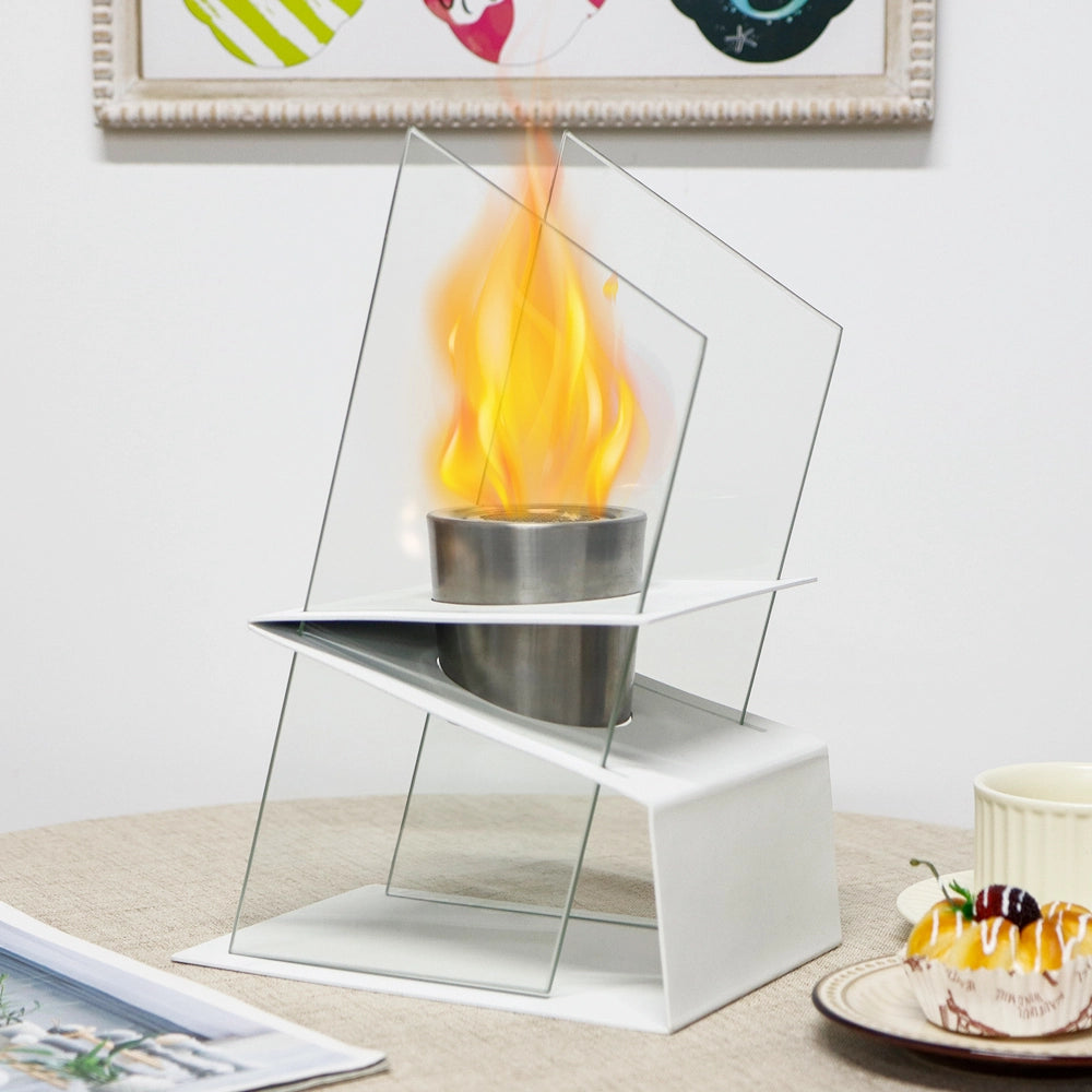 Weißer, glatter Kamin für den Innen- und Außenbereich, dekorativer Tischkamin aus Metall, Bio-Ethanol-Feuerstelle