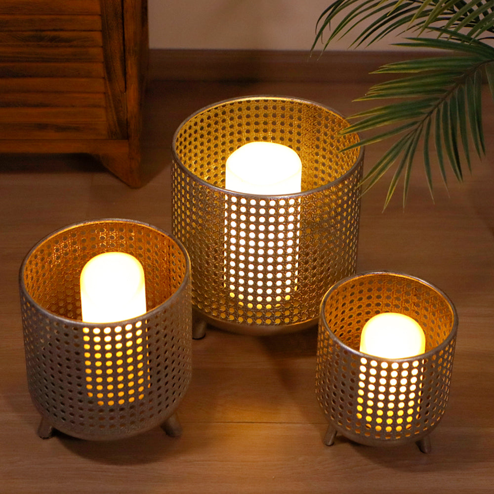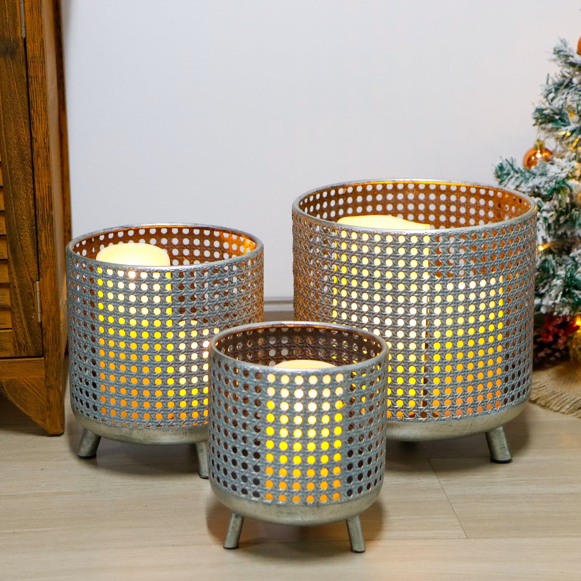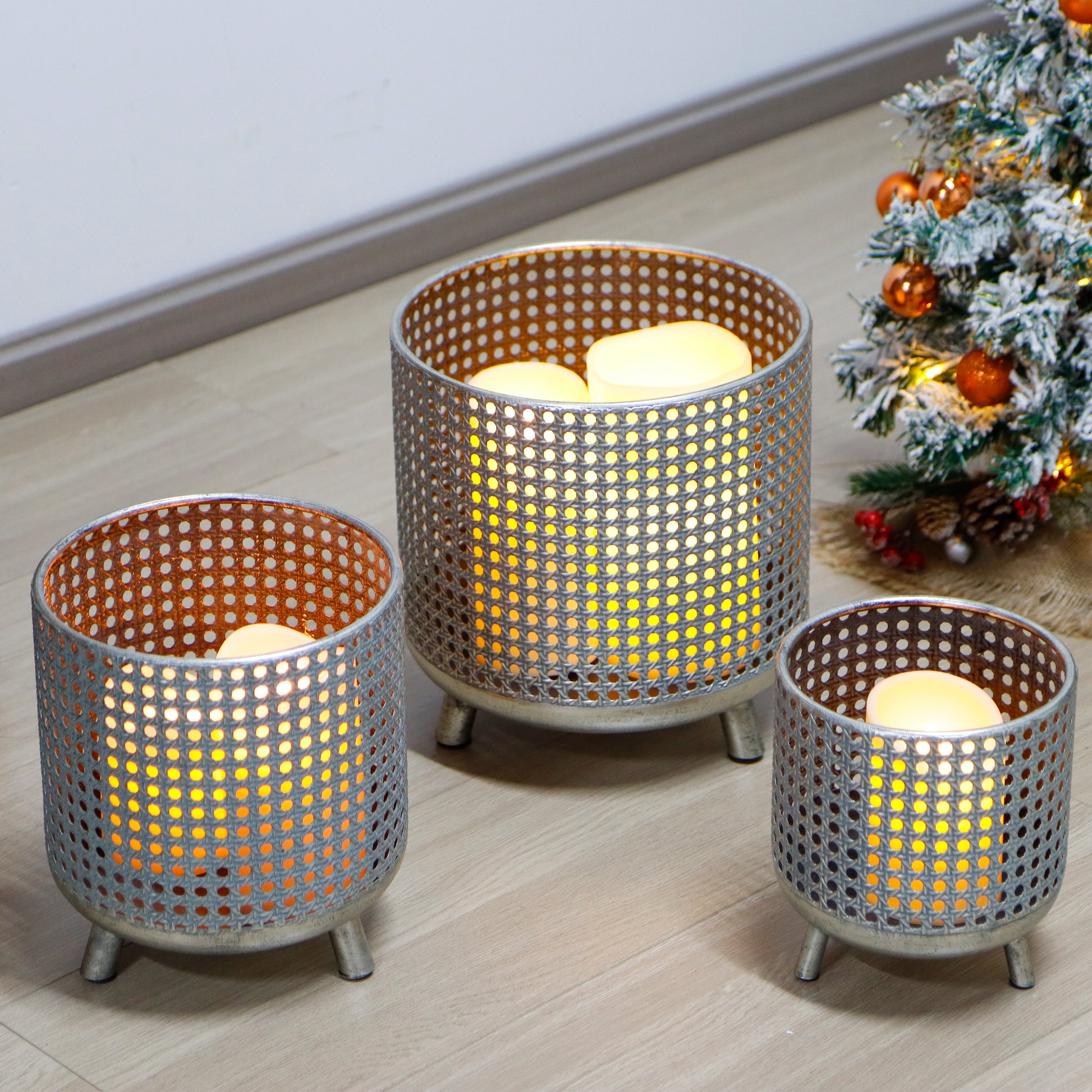 Beleuchten Sie Ihren Raum mit dem Set aus 3 silbernen Metallkerzenhaltern von JHY DESIGN