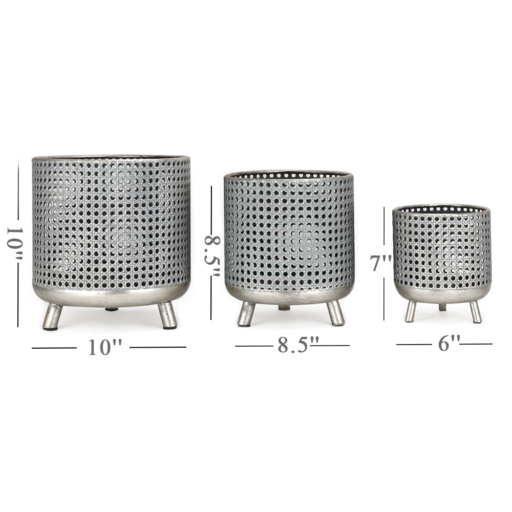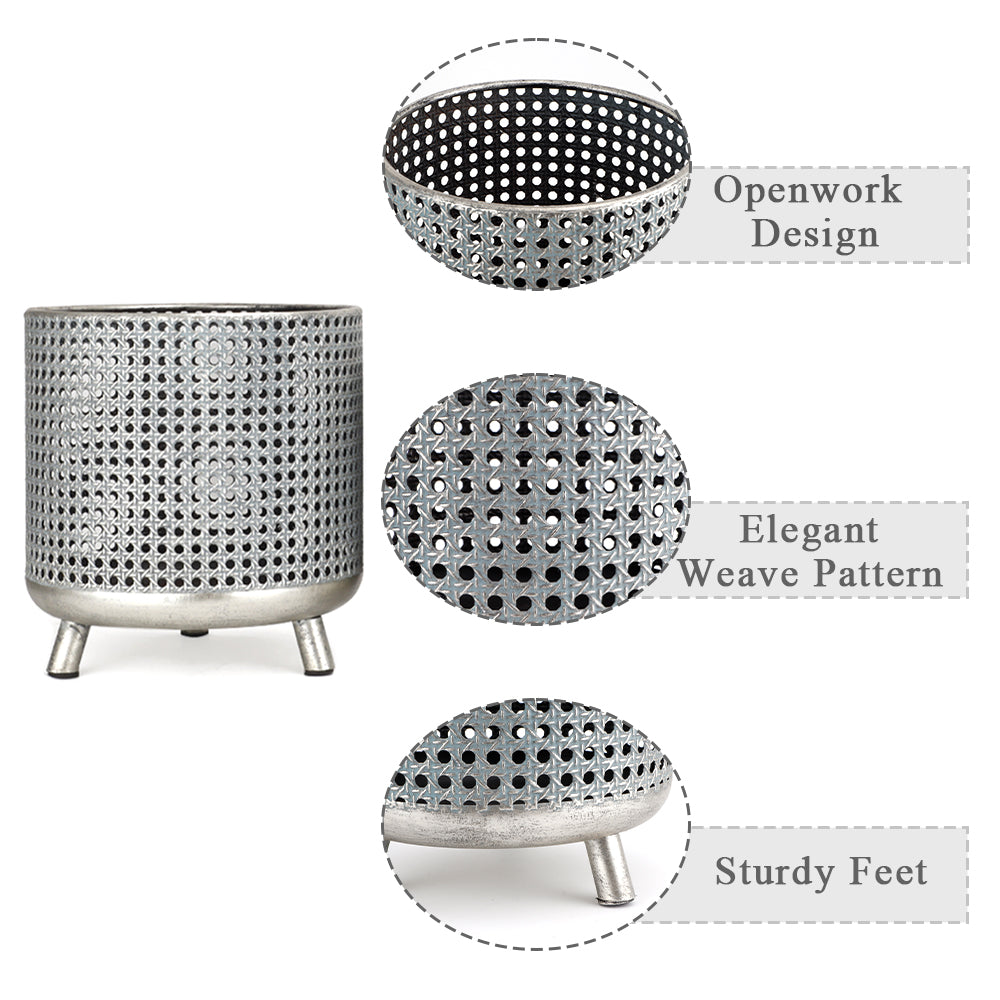 - Elegantes Trio: Dieses Set besteht aus drei silbernen Kerzenhaltern, von denen jeder ein eigenständiges Kunstwerk ist. Zusammen erzeugen sie dank ihrer aufwendigen Ausschnittmuster, die faszinierende Muster um sie herum werfen, ein exquisites Licht- und Schattenspiel. Ordnen Sie sie für ein einheitliches Erscheinungsbild an oder platzieren Sie sie in verschiedenen Bereichen, um einen goldenen Faden der Designkontinuität in Ihrem Raum zu schaffen.