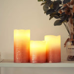 Tauchen Sie ein in ein Reich metallischer Eleganz mit dem Bronzefolien-LED-Kerzenset von JHY DESIGN. Wo jeder Glanz in bronzenem Glanz verstärkt wird.