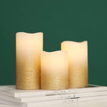 Batteriebetriebene Kerze aus echtem Wachs in Gold (3er-Set)