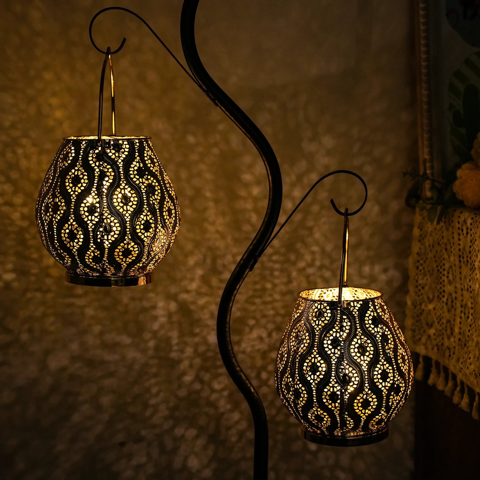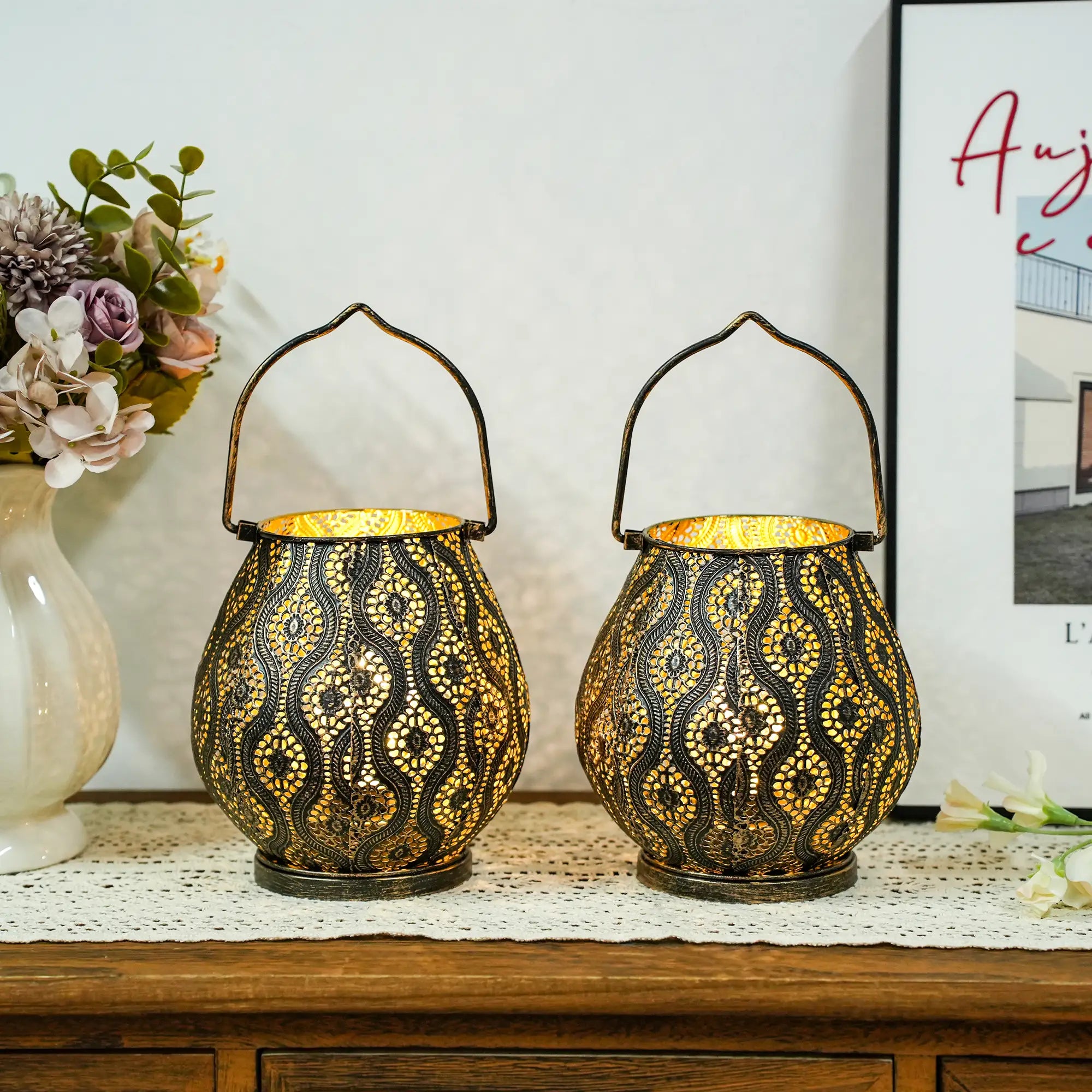 💡【MOROCCAN DESIGN】This Moroccan battery light lamp features a gold metal hollow-out design with built-in fairy string light bulbs. The warm light casts beautiful patterns on the wall or table. Gorgeous appearance, attractive openwork flower pattern, provides you with modern and unique garden decoration. Add warmth and comfort to your yard and home.