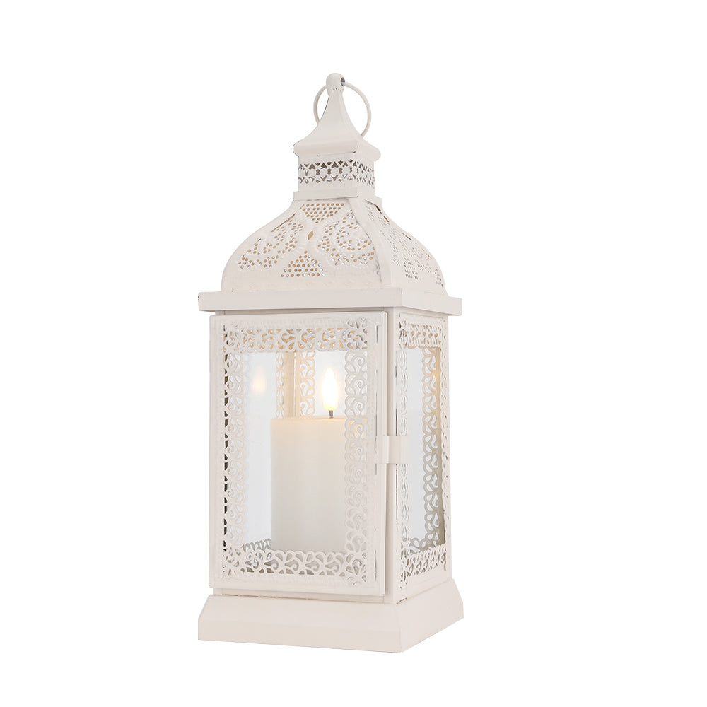 Lanterne à bougie en métal de style rustique de 13 po de hauteur (blanche)