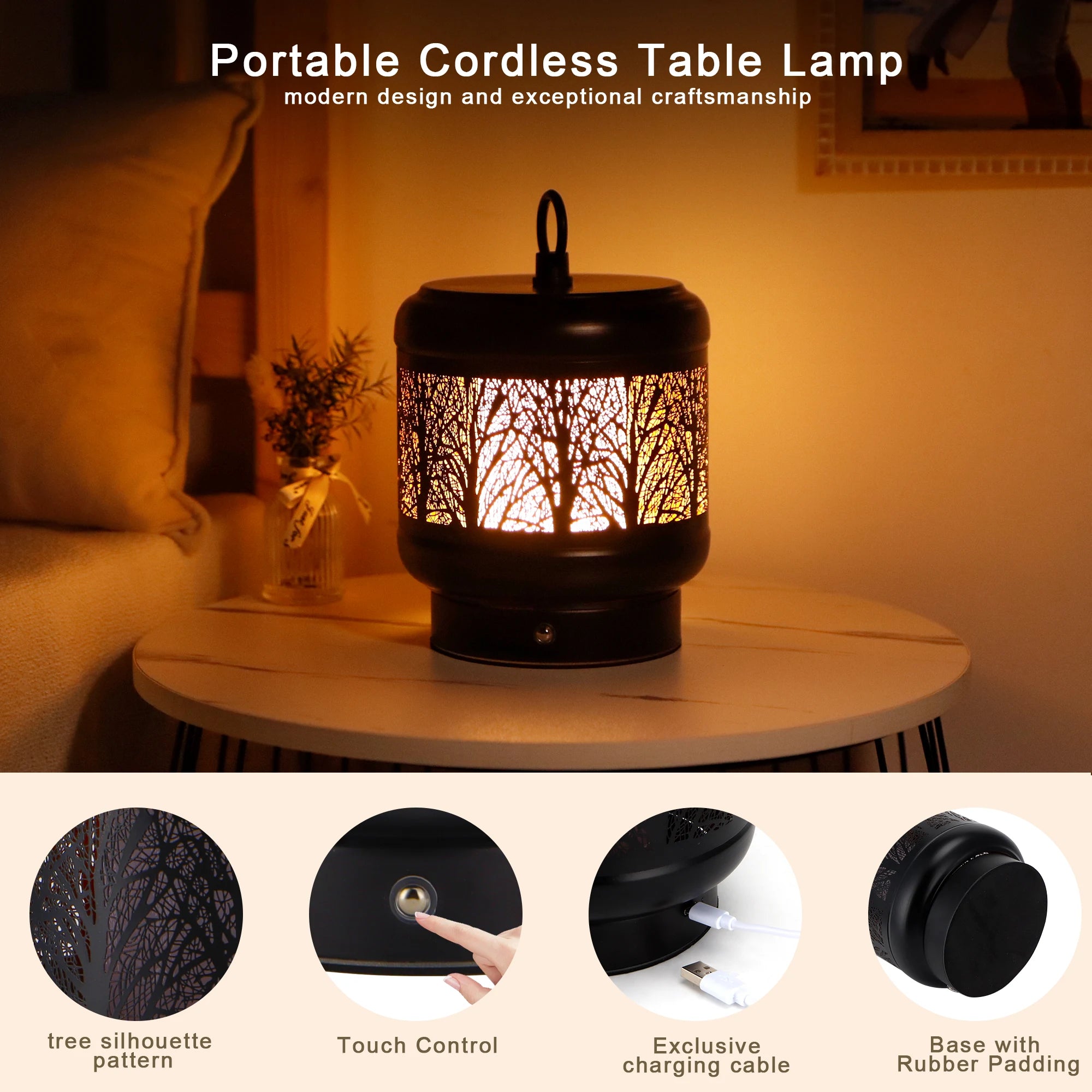 - Lampe portable de qualité prioritaire : les lampes rechargeables TRIROCKS pour la maison sont conçues pour améliorer la qualité de vie. Fabriquée en métal de haute qualité, cette élégante lanterne présente des découpes complexes en forme de silhouette d'arbre qui projettent des ombres captivantes, mettant en valeur sans effort n'importe quel décor intérieur ou extérieur. Sa construction robuste ajoute non seulement une touche de durabilité, mais complète également l'attrait esthétique, ce qui en fait un mélange parfait de fonctionnalité et de style.