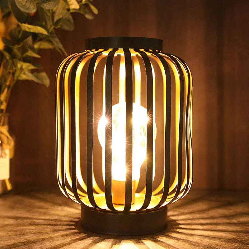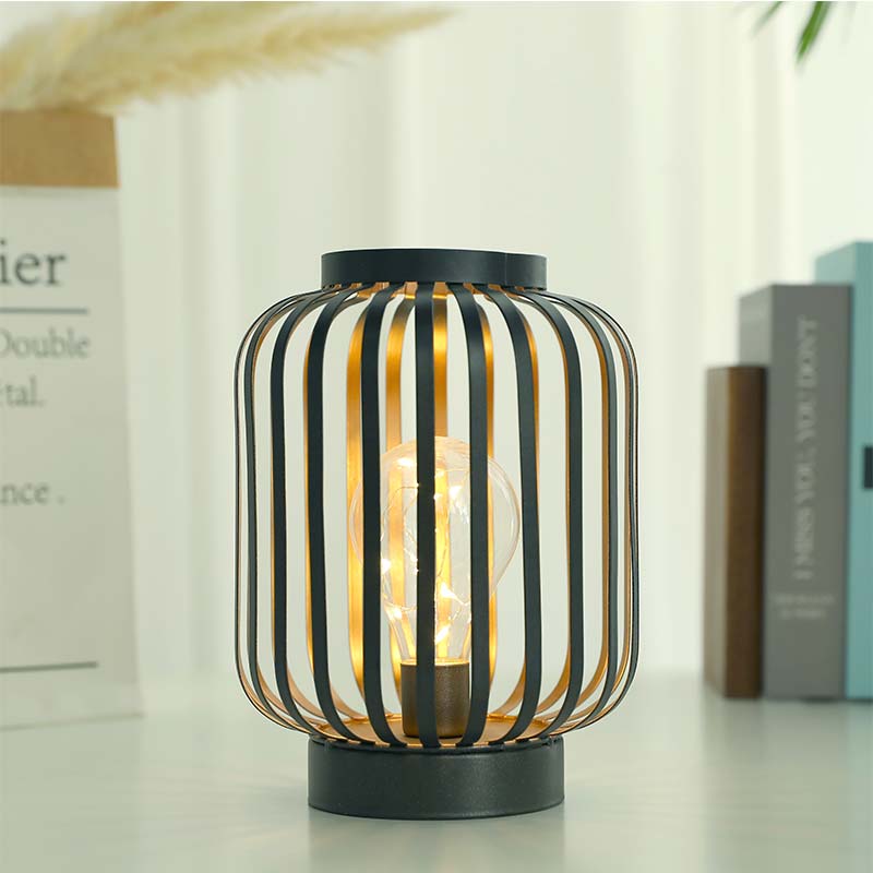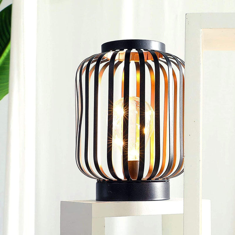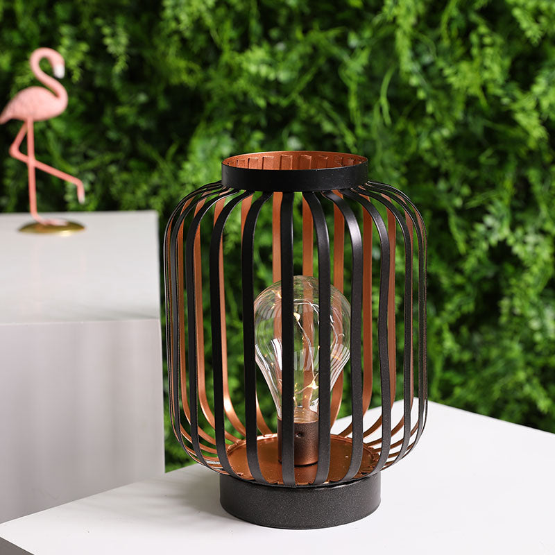 The lamp boasts a meticulous metal cage design, providing an industrial yet refined aesthetic, making it a standout piece in any setting.Efficient Battery Operation