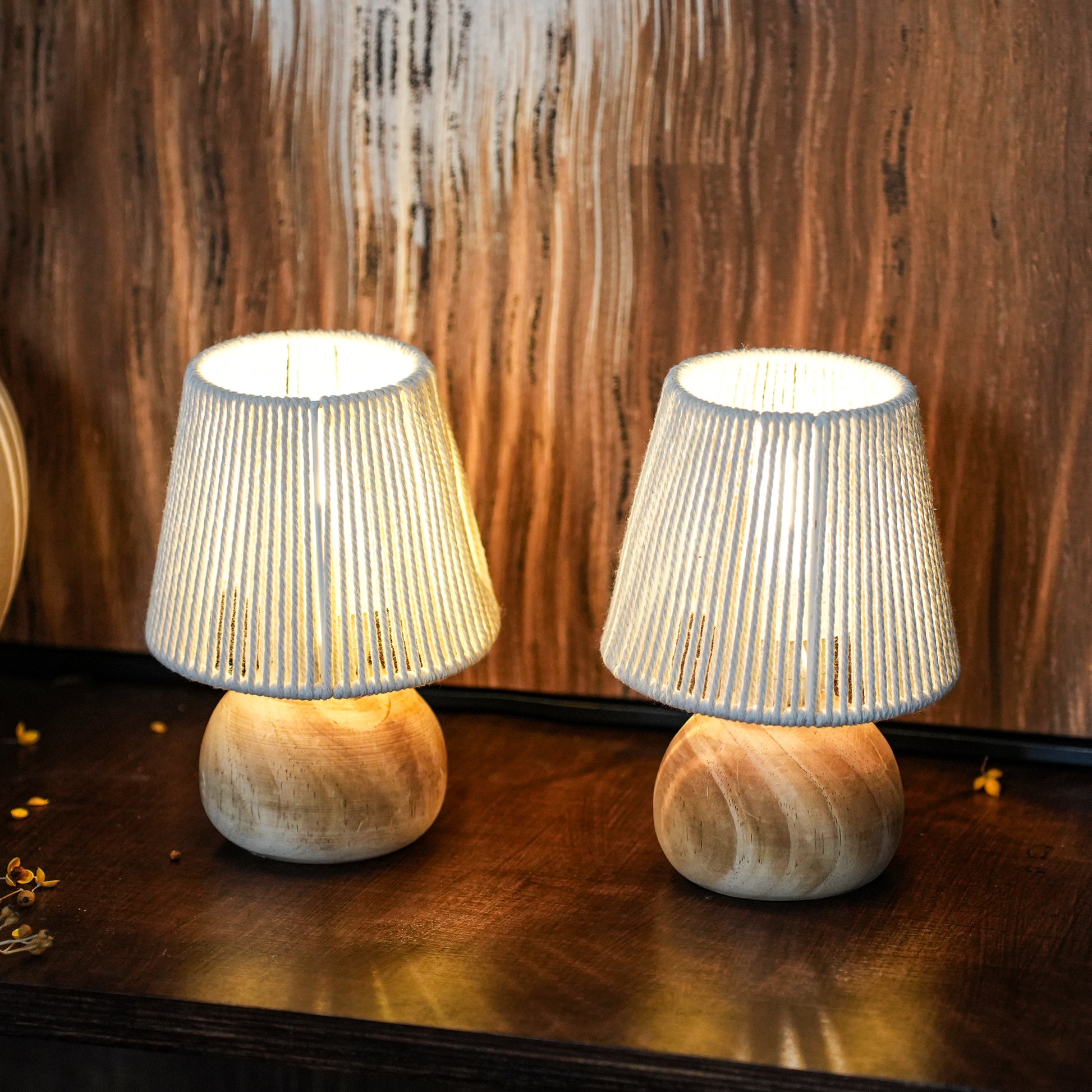 Stylish Boho Table Lamp: Enhance your space with this elegant cordless table lamp, featuring a woven cotton rope design and wooden base. Perfect as a bedside lamp, desk lamp, or outdoor table lamp, its boho charm complements any decor—bedroom, living room, or patio.