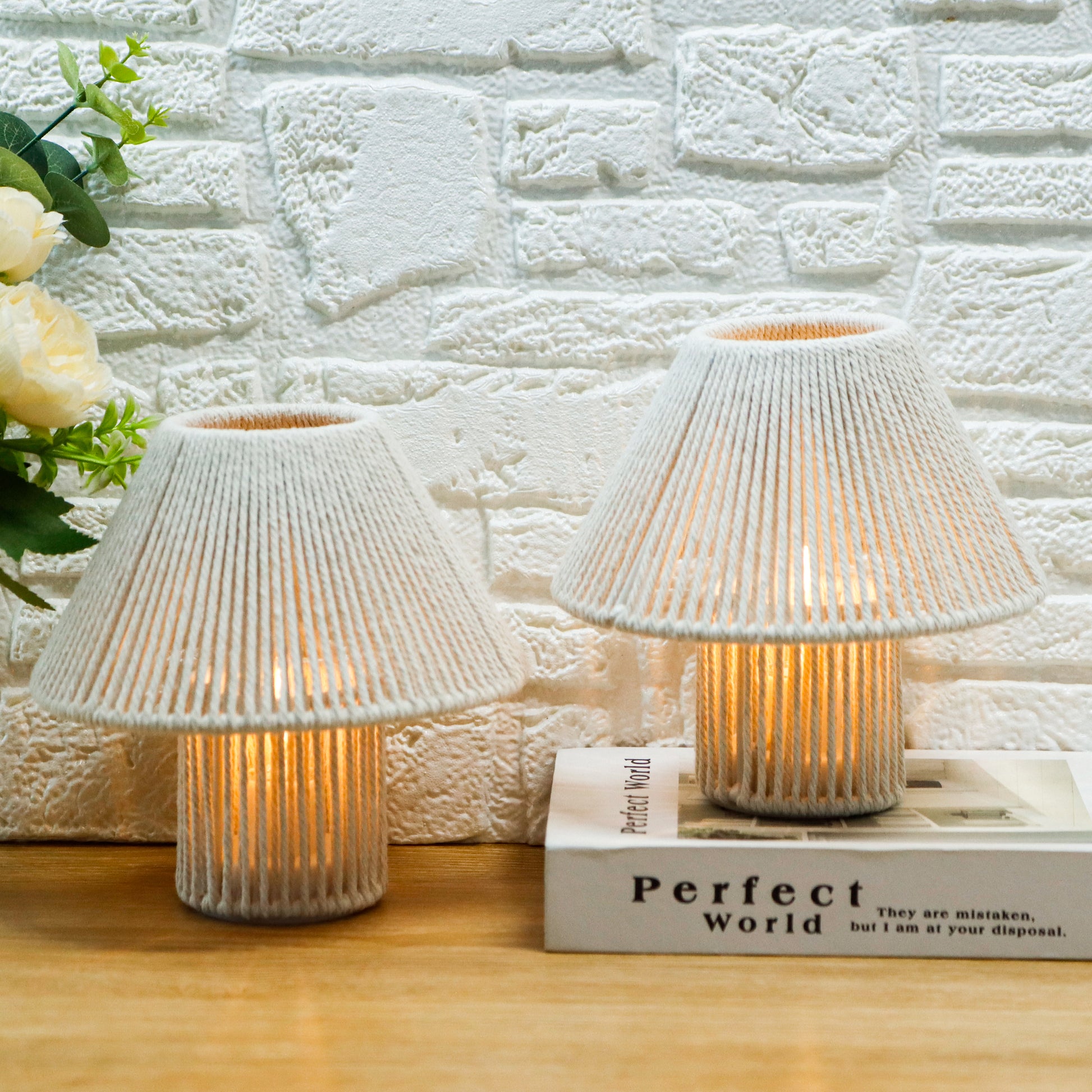 Stylish & Functional Boho Lighting Set:This set of two 7x7x7 inch cordless table lamps combines natural elegance with practical design. Handwoven from high-quality cotton rope, the lamps offer a warm, textured look that complements boho, rustic, and modern decor styles. Whether placed in your bedroom, living room, or on a desk, they bring cozy, ambient charm to any space—without the clutter of cords.
